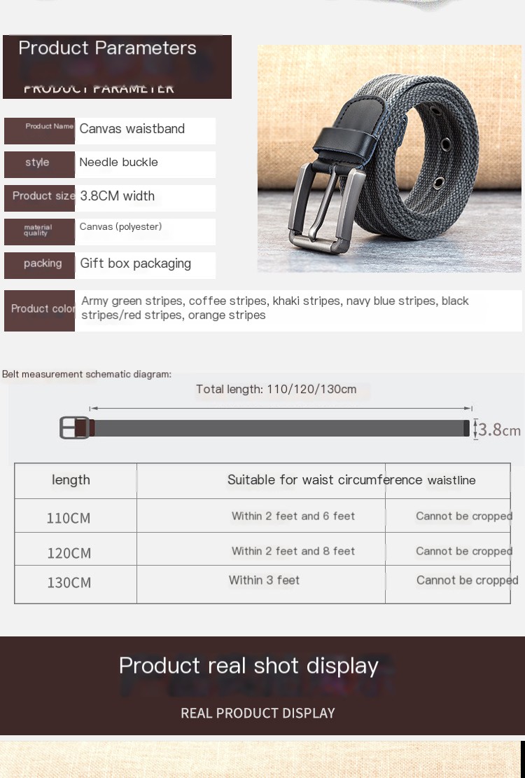 Available in multiple lengths—110cm, 120cm, and 130cm—and a variety of colors including Red, Yellow, Blue, Grey, Coffee, Shallow Khakis, and Army Green, you can find the perfect match for any wardrobe. The belt width varies from 2 to 4cm, providing a comfortable fit for all body types.