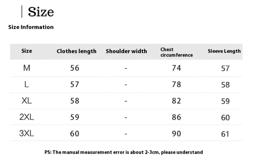 - Sizes: Choose from M, L, XL, 2XL, and 3XL. (Note: Asian sizes are 1-2 sizes smaller than European and American sizes, so please select the larger size if you're between two sizes.)